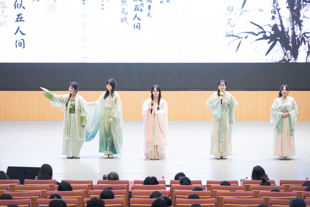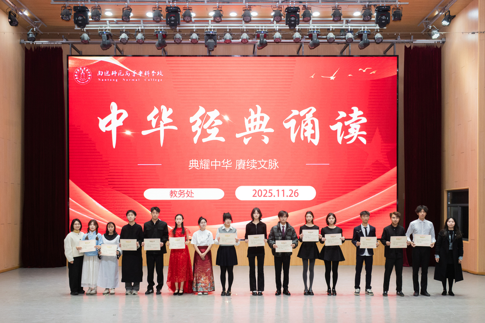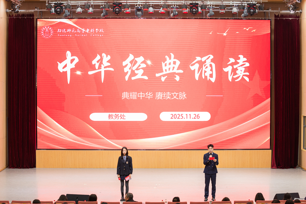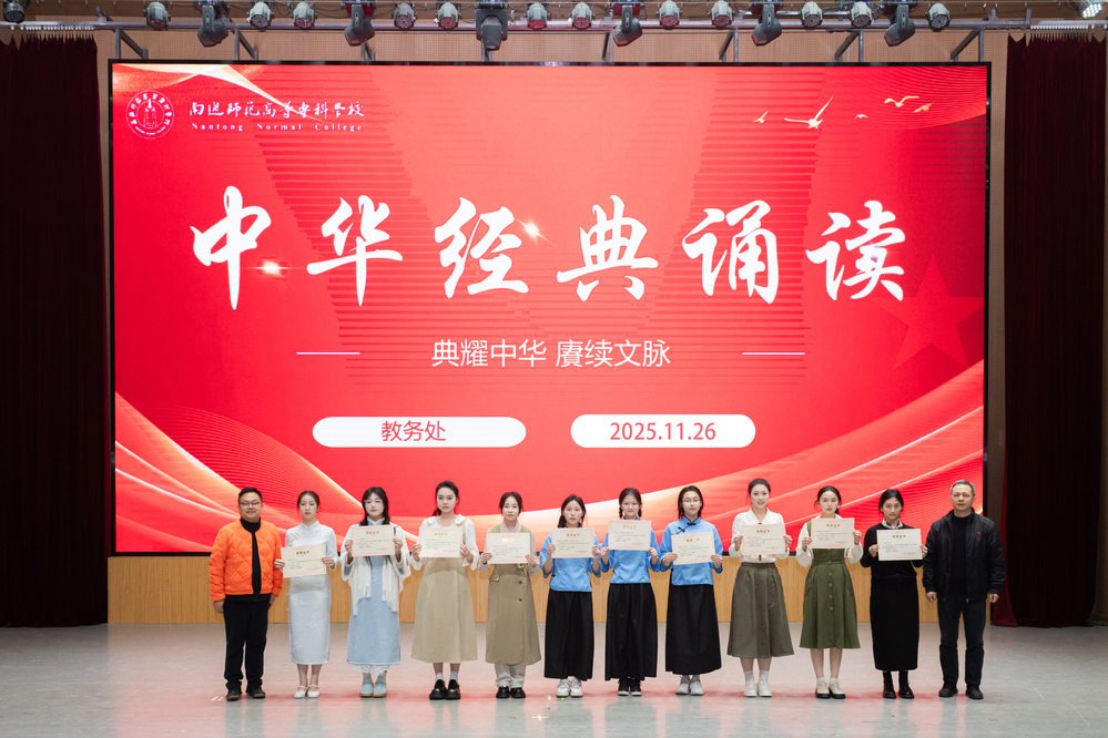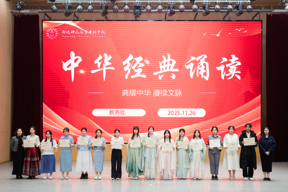 11月26日下午,由教务处举办的2025年“中华经典”师生诵读比赛在开发区校区图文信息中心大报告厅举办。学校党委宣传部、党政办、教务处、学工处、团委、工会、图书馆等部门相关同志担任评委,300多名师生到场观赛。