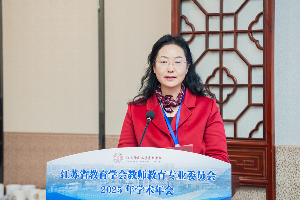 开幕式由江苏省教育学会教师教育专业委员会理事长、盐城幼儿师范高等专科学校党委书记刘毓航主持。我校党委书记陈玉君代表学校致欢迎辞,言辞恳切、热情洋溢。她重点介绍了学校百年师范的办学传承、在教师教育领域的特色优势与鲜明成果,系统阐述了学校近年来的发展成就,并展望了“十五五”期间的事业发展愿景。江苏省教育厅教师工作处二级调研员许李军、江苏省教育学会专委会资深顾问鞠勤等领导嘉宾出席会议并致辞。专委会秘书长曹如军教授向全体与会代表详细通报了2025年度工作开展情况,并对2026年度工作要点进行了全面解读。